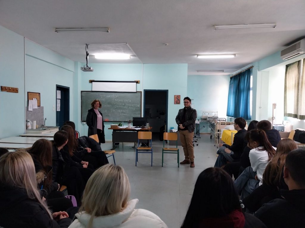 Την Τρίτη 12-3-2024 πραγματοποιήθηκε διαδικτυακή επικοινωνία, μέσω webex, μεταξύ των μαθητών του τμήματος ΒΥΓ10 του σχολείου μας και των μαθητών της ειδικότητας β.βρεφονηπιοκόμων του 1ου ΕΠΑΛ Καλαμάτας. Η επικοινωνία αυτή υλοποιήθηκε στο πλαίσιο της δράσης αξιολόγησης ” Οι επαγγελματικές επιλογές και το πλαίσιο εργασίας των αποφοίτων του τομέα Υγείας Πρόνοιας και Ευεξίας των ΕΠΑΛ”.
