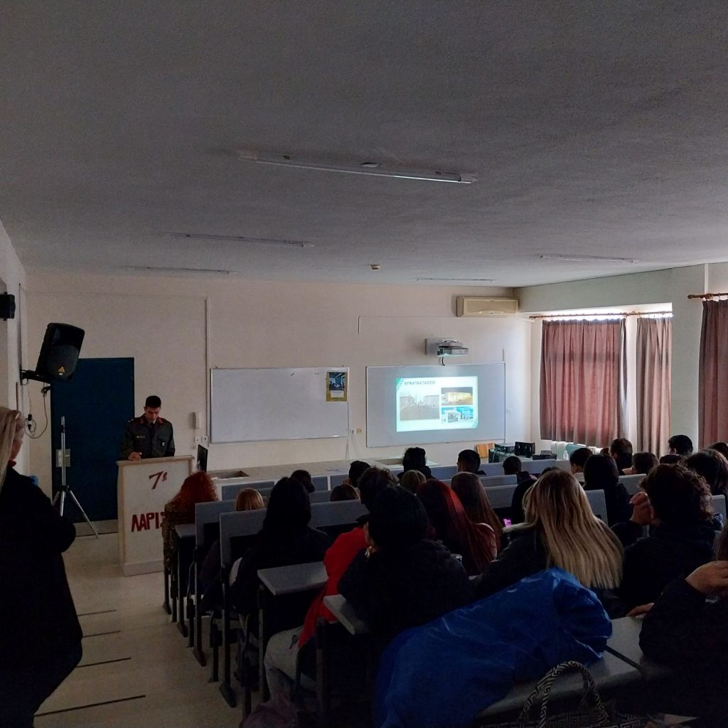 Στις 26 Νοεμβρίου 2025 στο αμφιθέατρο του 7ου ΕΠΑΛ Λάρισας πραγματοποιήθηκε ενημέρωση για τις στρατιωτικές σχολές και ειδικότερα για τη σχολή ΣΜΥ Τρικάλων ,από τον κο Γαλάνη και τον κο Μοσχοβίτη-εκπροσώπους της 1ης Στρατιάς-στα πλαίσια του επαγγελματικού προσανατολισμού.