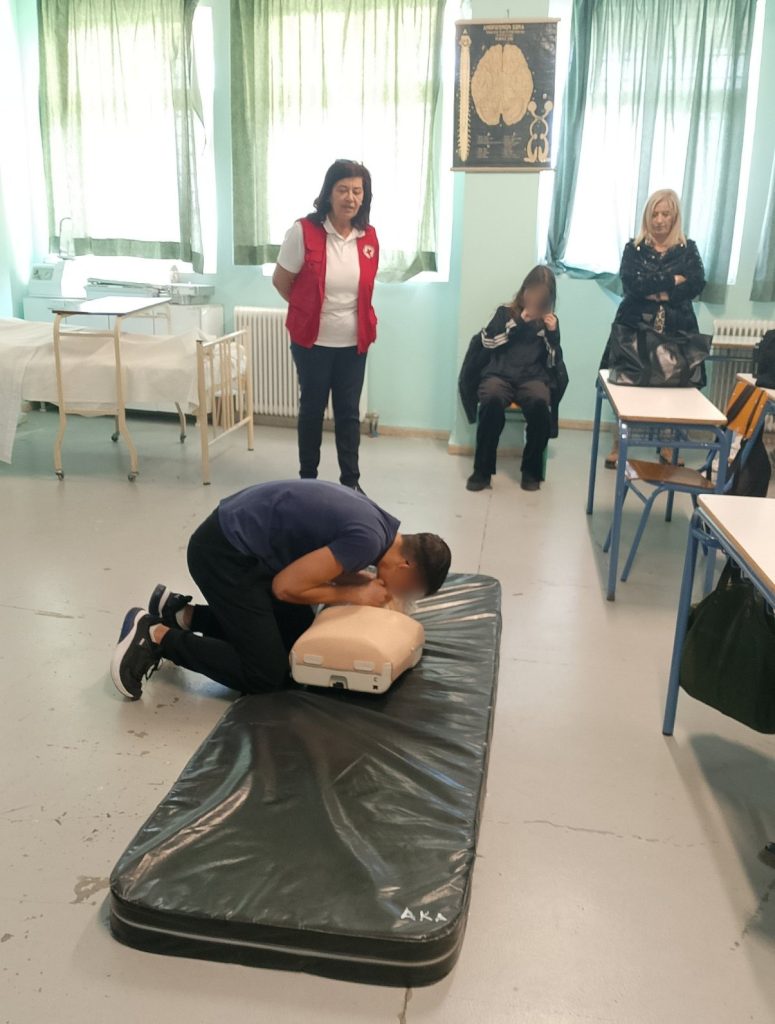 Οι μαθητές του Τομέα Υγείας, Πρόνοιας και Ευεξίας επιμορφώθηκαν στοχευμένα στην Καρδιοαναπνευστική Αναζωογόνηση (ΚΑΡΠΑ) και στις πρώτες βοήθειες για την αντιμετώπιση της πνιγμονής (χειρισμός Heimlich). Μέσα από βιωματικά σενάρια ανέλαβαν τόσο τον ρόλο του διασώστη όσο και του ατόμου που χρήζει βοήθειας, αποκτώντας ουσιαστική εμπειρία και προετοιμαζόμενοι να μεταφέρουν τις γνώσεις τους και σε συμμαθητές τους.