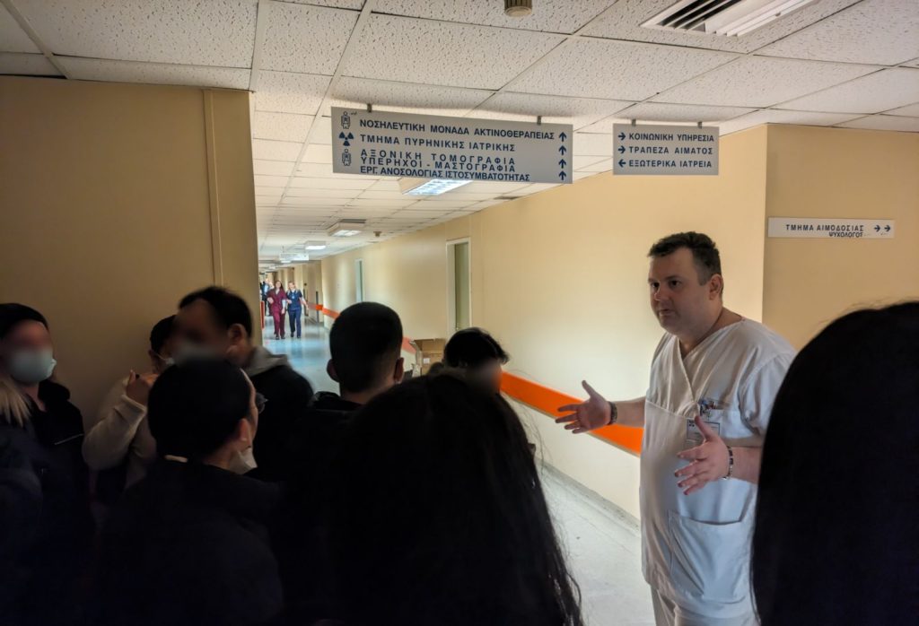 Οι μαθητές ξεναγήθηκαν στο Τμήμα Ιατρικών και Βιολογικών Εργαστηρίων από την προϊσταμένη κα Ευγενία Σολδάτου, ενώ επίσης επισκέφθηκαν και ενημερώθηκαν για τις διαδικασίες, τον εξοπλισμό και τις απαιτήσεις του Τμήματος Επειγόντων Περιστατικών (ΤΕΠ) από τον κ. Μιχαήλ Δημήτριο, της Ρευματολογικής Κλινικής από την κα Τσιάμαλου Παρασκευή και του Τμήματος Αποστείρωσης από την κα Τζιμπίδα Λαμπρινή. Επιπλέον, η Διευθύντρια του Εργαστηρίου Ακτινολογίας, κα Μαριάννα Βλυχού, παρουσίασε τη λειτουργία του ακτινολογικού τμήματος και τις σύγχρονες διαγνωστικές μεθόδους που εφαρμόζονται. Η διδακτική επίσκεψη αποτέλεσε ένα ουσιαστικό εκπαιδευτικό βήμα, καθώς έφερε τους μαθητές σε άμεση επαφή με το πραγματικό περιβάλλον παροχής υπηρεσιών υγείας. Μέσα από τη γνωριμία τους με τη λειτουργία σύγχρονων νοσοκομειακών δομών, είχαν τη δυνατότητα να συνδέσουν τη θεωρητική γνώση με την επαγγελματική πράξη και να αντιληφθούν έμπρακτα τις απαιτήσεις, τις ευθύνες και το εύρος των ειδικοτήτων του τομέα Υγείας.
