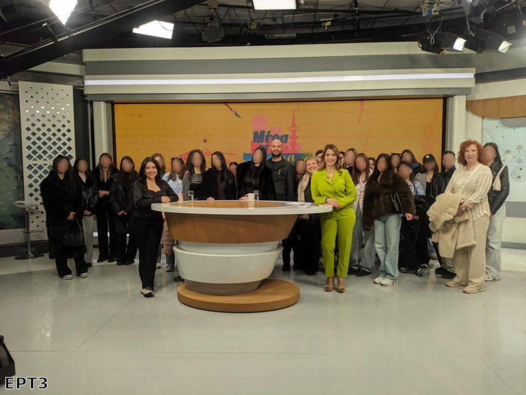 Την ίδια ημέρα, μαθητές του Τομέα Ευεξίας επισκέφθηκαν τις εγκαταστάσεις της ΕΡΤ3, όπου είχαν την ευκαιρία να γνωρίσουν από κοντά το επαγγελματικό περιβάλλον της τηλεόρασης και ειδικότερα τον ρόλο του επαγγελματικού μακιγιάζ στην τηλεοπτική παραγωγή. Οι μαθητές ενημερώθηκαν από επαγγελματίες του χώρου για την ιστορία του επαγγέλματος, τις απαιτήσεις της καθημερινής εργασίας, καθώς και για τις σύγχρονες τάσεις και προοπτικές στον τομέα αυτό. Τους μαθητές συνόδευσαν οι εκπαιδευτικοί Κούτου Τασία και Γαλατσίδα Ευαγγελία, καθώς και ο Διευθυντής του 3ου ΕΚ Λάρισας Αδάμος Δημήτριος.